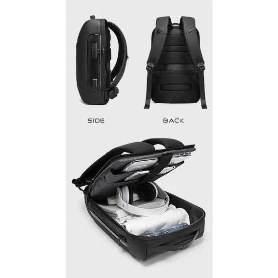 الخامة الممتازة: مصنوعة من بوليستر عالي الجودة مقاوم للماء، مع سوست وملحقات عالية الجودة. تصميم منظم: حقيبة ظهر بجيب رئيسي واسع يحتوي على حافظة مبطنة لحماية اللابتوب والتابلت، مع مساحة كافية لحفظ الملفات والمستندات. كما تحتوي على جيبين أماميين للمحفظة، الهاتف، جواز السفر وغيرها. مزودة بمقبض مريح للحمل. تصميم مضاد للسرقة والسعة: تحتوي على جيب خلفي بسوستة مخفية لتخزين النقود، البطاقات أو المحفظة، مما يزيد من أمان مقتنياتك. الأبعاد: 30 × 12.5 × 48 سم (طول × عرض × ارتفاع). السعة: 18 لتر. ميزة الـ USB: منفذ USB خارجي مع كابل شحن مدمج يتيح شحن أجهزتك بسهولة عبر الباور بنك. حزام حقيبة السفر: تصميم يتيح تثبيت الحقيبة على مقبض شنطة السفر لسهولة الحركة أثناء السفر. المظهر: أنيق، عصري، ومتين. مخصص لحقائب الرجال بتصميم عصري بعيد عن الأشكال التقليدية الثقيلة، ليعكس مفهوم جديد من “جماليات السفر”. |