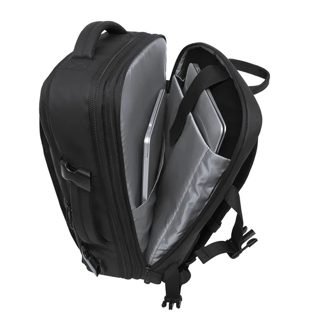 • أبعاد قياسية: 18.5 انش*13 انش*7 انش • شنطة ظهر عملاقة متعددة الأغراض تجمع بين الفخامة والعملية، مصنوعة من خامات عالية الجودة ومقاومة للماء والخدش لتتحمل الاستخدام الشاق والسفر • تتميز بتصميم أنيق باللون الأسود الفخم مع جيب توسعة ذكي يزيد من سعتها التخزينية بشكل كبير لتستوعب كافة أغراضك واللابتوب بسهولة • مزودة بجيب خلفي للتعليق على شنط السفر • مزودة بوصلة USB خارجية تتيح لك شحن أجهزتك الإلكترونية أثناء التنقل بكل راحة، مما يجعلها رفيقك المثالي في العمل والرحلات • تتمتع بأبعاد واسعة ومدروسة لتنظيم المحتويات، مع ظهر مبطن قوي وأحزمة مريحة لضمان سهولة الحمل لفترات طويلة • تسع جهازك الحاسوب وجميع متعلقاتك بسهولة وانسيابية |